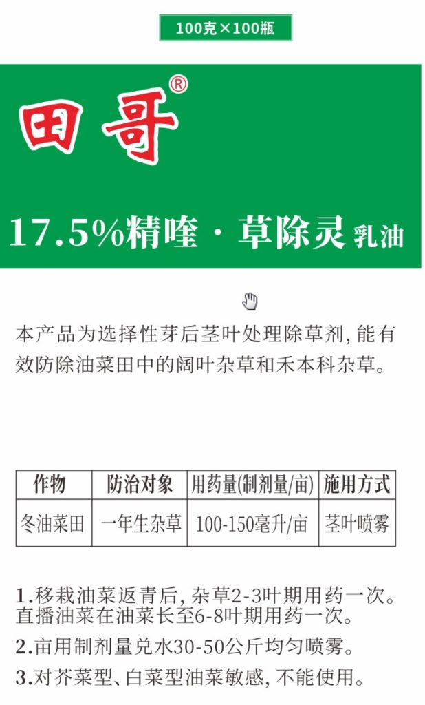 本產(chǎn)品為選擇性芽后莖葉處理除草劑,能有效防除油菜田中的闊葉雜草和禾本科雜草。
